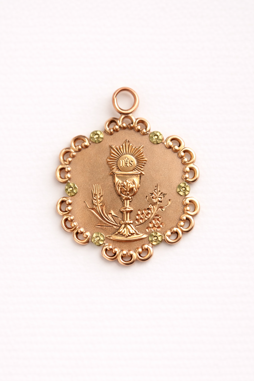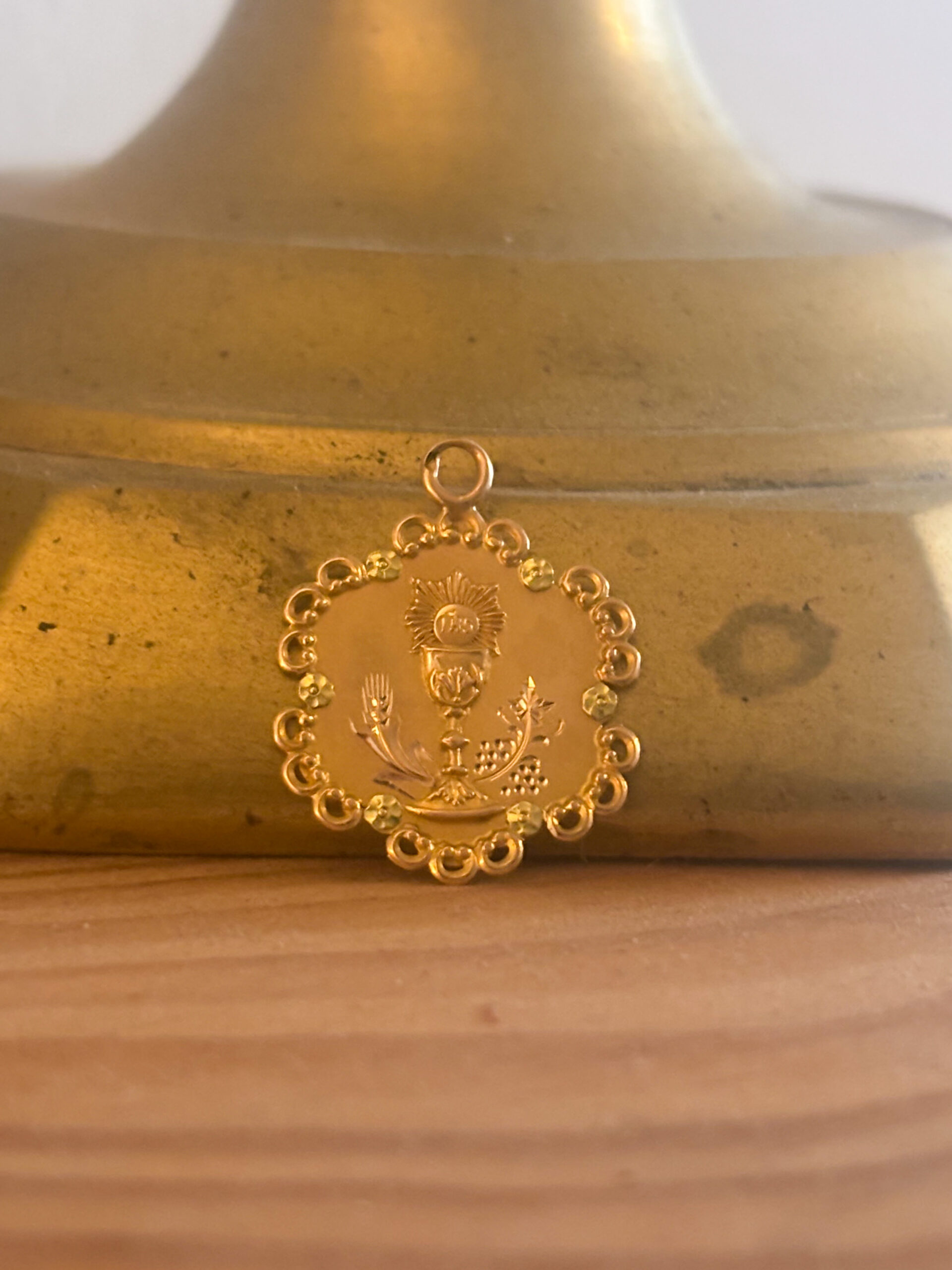 Médaille ancienne en or 18 carats – Calice eucharistique